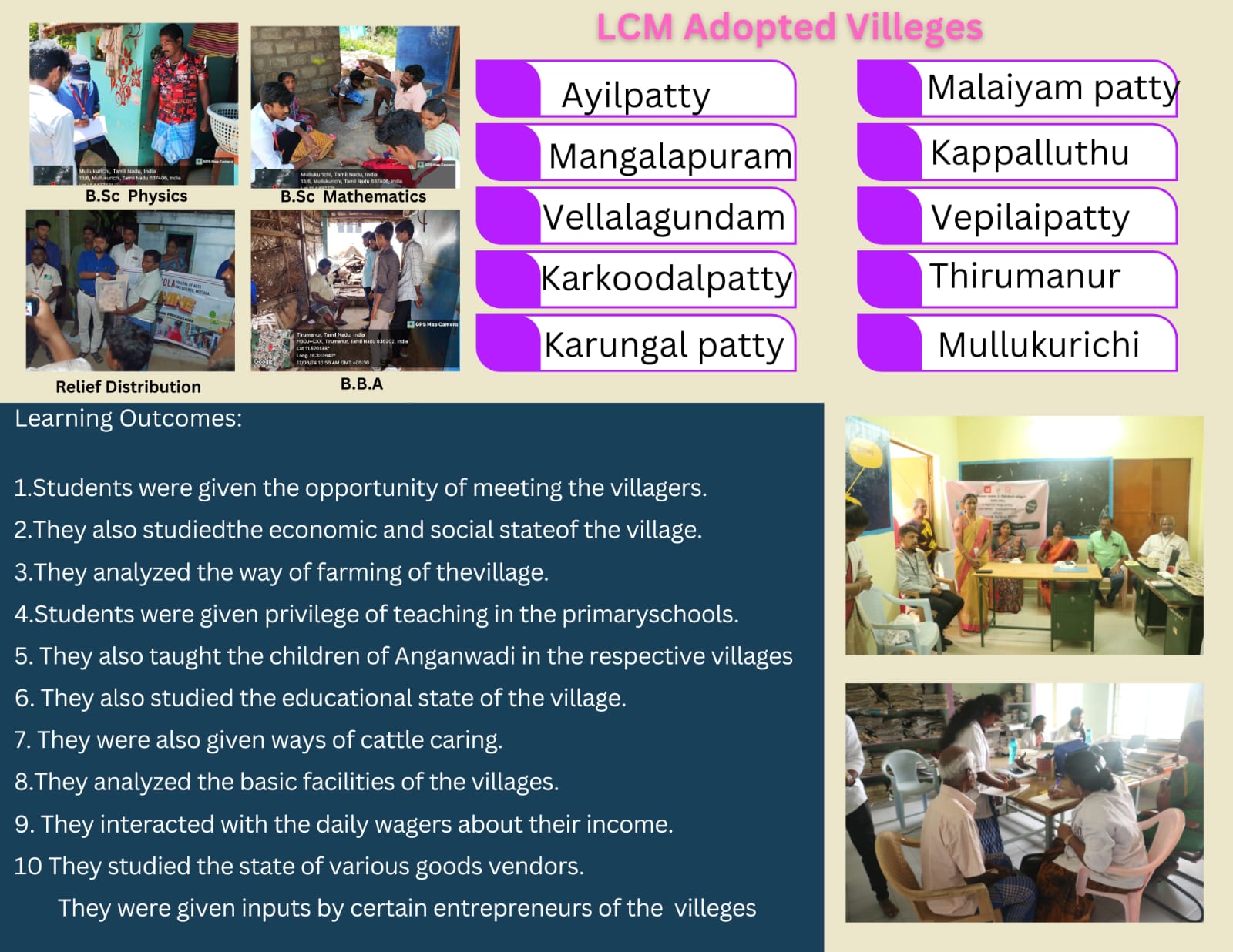 5. Target Villages : Oilpatty, Andikuttai, Urambu, TG Pudhur,